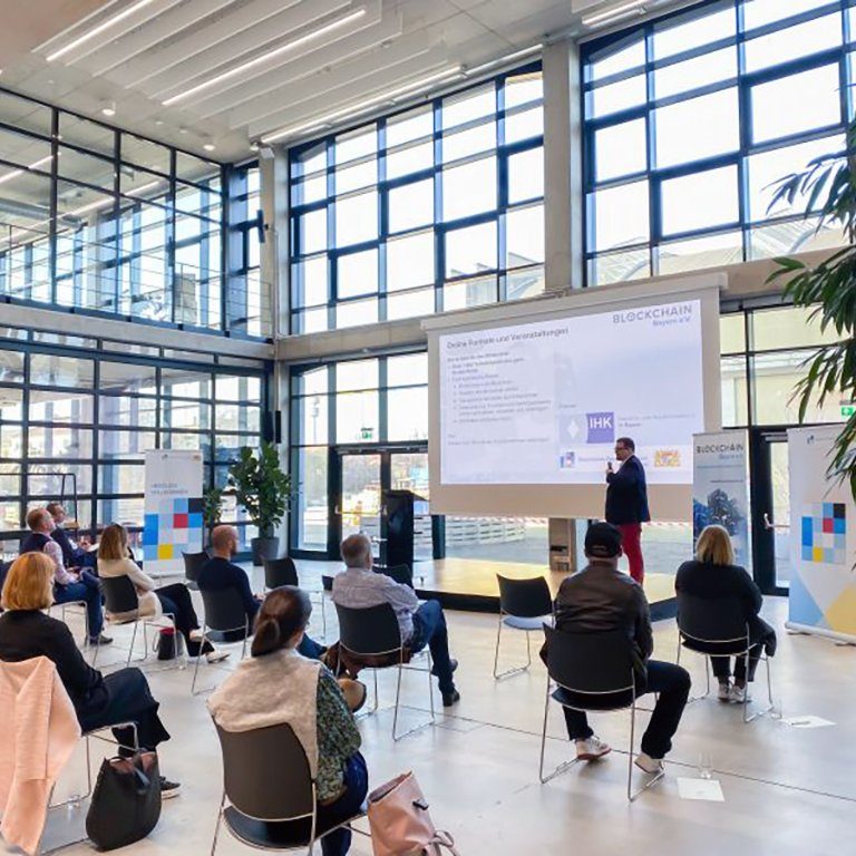 Full House beim 5-jährigen Jubiläum des Blockchain Bayern e.V. 🚀 In dieser Woche durften wir mit unseren Mitgliedern und zahlreichen Gästen unser Fünfjähriges feiern! Und welcher Raum wäre dafür besser geeignet, als das Auditorium des Munich Urban Colab?